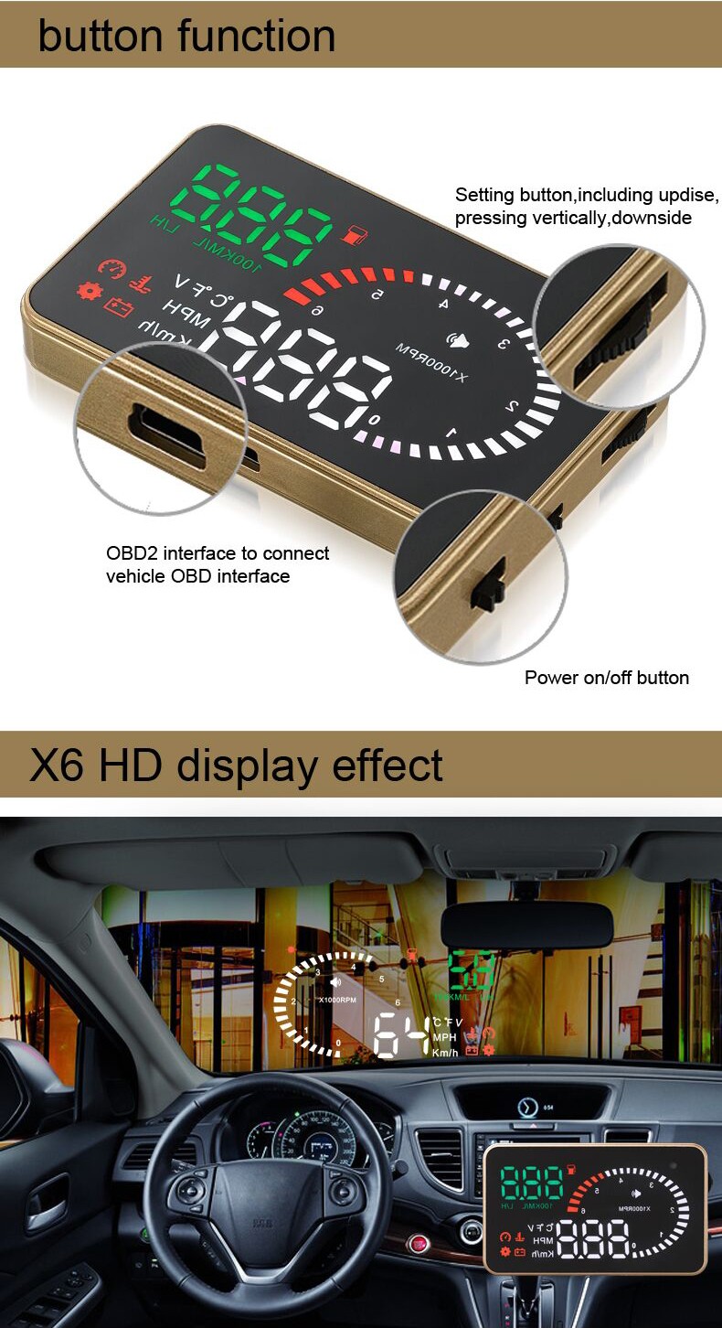 3inch hud obd2 car head up display x6 Overspeed Warning System Projector Windshield Auto Electronic Voltage Alarm
