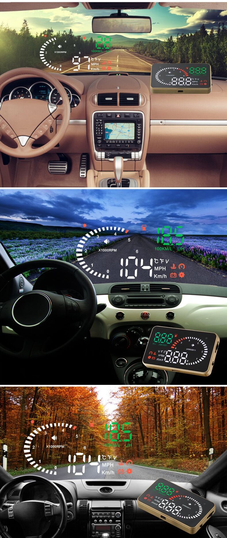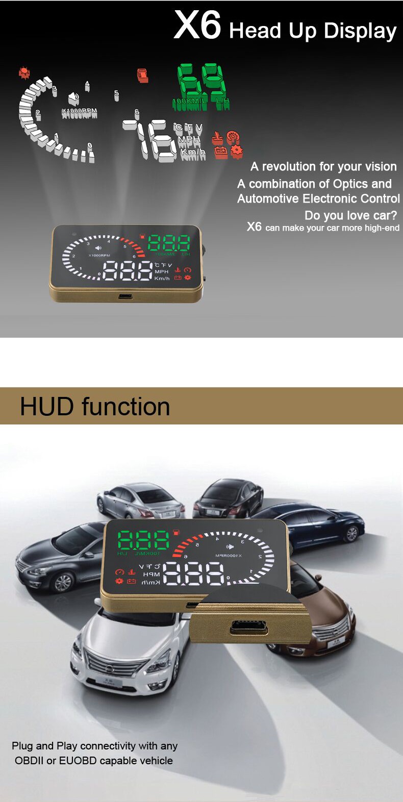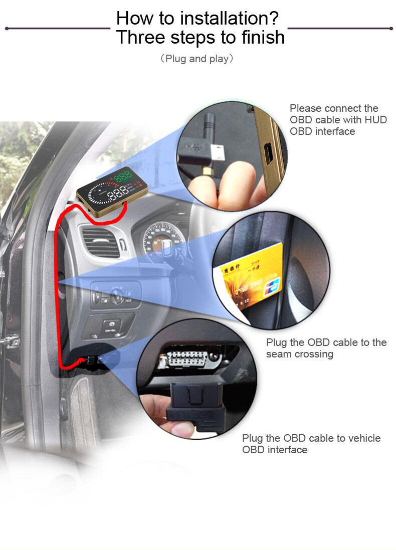 This product is for drivers’ safety, especially in high-speed driving at night, HUD can keep driver eyes on the road and can decrease car accident. HUD can project the important information (such as speed) onto the windshield, it can help inexperienced novice to control their speed and to avoid speeding violation in the speed limit road. More importantly, it enables the driver instantly read the number in great vision and always make drivers eyes on the road in clear mind.