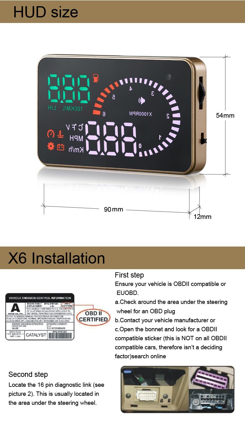 Car model year (US Cars after 2003 years,other region Cars after 2007 years,only these cars start using OBDII or EOBD),HUD don’t work for OBDI and JOBD.So pls change a OBD2 car to use